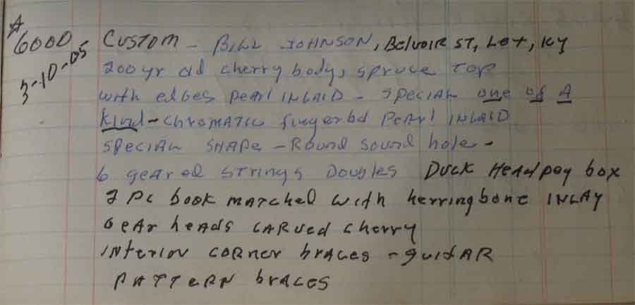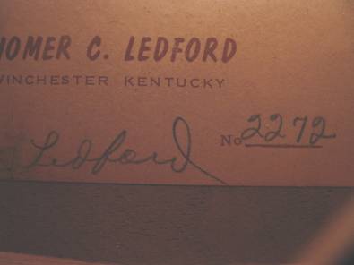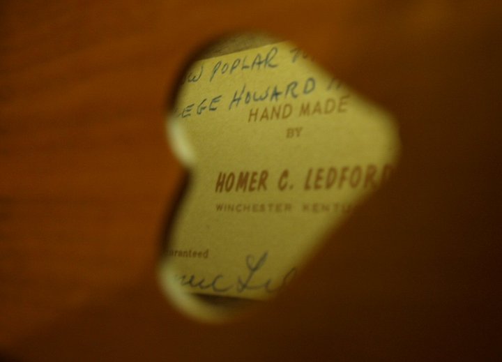 limited area. It is unnumbered but marked, in pencil, under the lower left soundhole: Made by/ Homer Ledford/ Winchester, Ky.