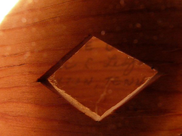 in pencil, directly on the back: [Made By/ Homer C Ledford/ Winchester, Ky.].