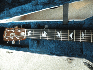 nut. It is signed under the lower left diamond soundhole,